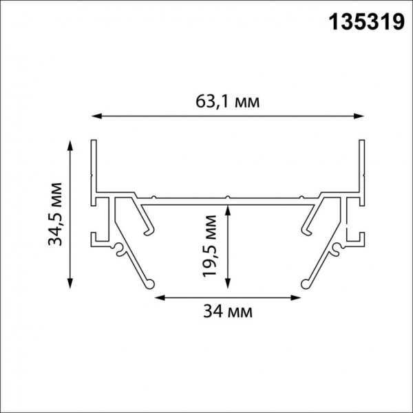 135319 Интрудер (профиль) 2м для встраивания однофазного трехжильного шинопровода в гарпунный (ПВХ) натяжной потолок Novotech Expert (торц. заглушки 2